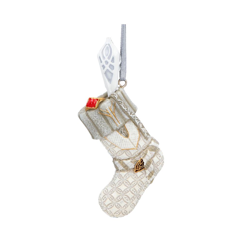The Lord of the Rings Gandalf the White Stocking Hanging Ornament is a charming festive decoration inspired by the iconic wizard. Featuring a detailed hand-painted design and a string hanging loop, this durable resin stocking captures Gandalf’s white robes and staff in elegant holiday style. Packaged in a branded gift box, it’s perfect for Tolkien fans, fantasy lovers, and anyone wanting to add a magical touch to their Christmas decor. Bring the spirit of Middle-earth to your celebrations with this enchanting ornament.