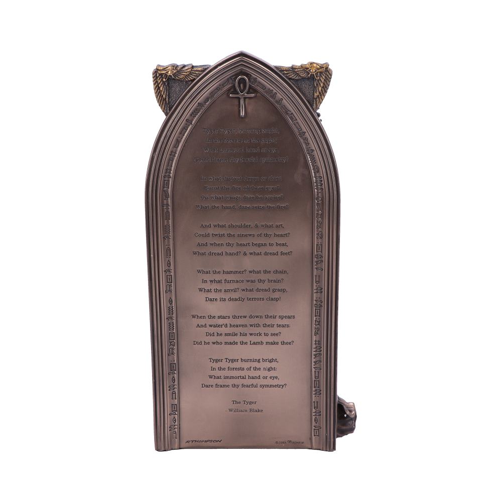 This magnificent figurine comes from the mind of Fantasy artist Ruth Thompson. Cast in the finest Bronzed resin before being painstakingly hand-painted, this piece shows an ancient Egyptian Priestess wearing a distinct headpiece, an usekh collar, multiple armbands and bracelets with a flowing sheer skirt. A ferocious lion sits at her side, a majestic eagle perches on her shoulder as she cradles a cat in he arms. Perfect for those infatuated by ancient Egyptian culture, this fantastic Priestess figurine is the perfect centrepiece for any altar or coffee table.