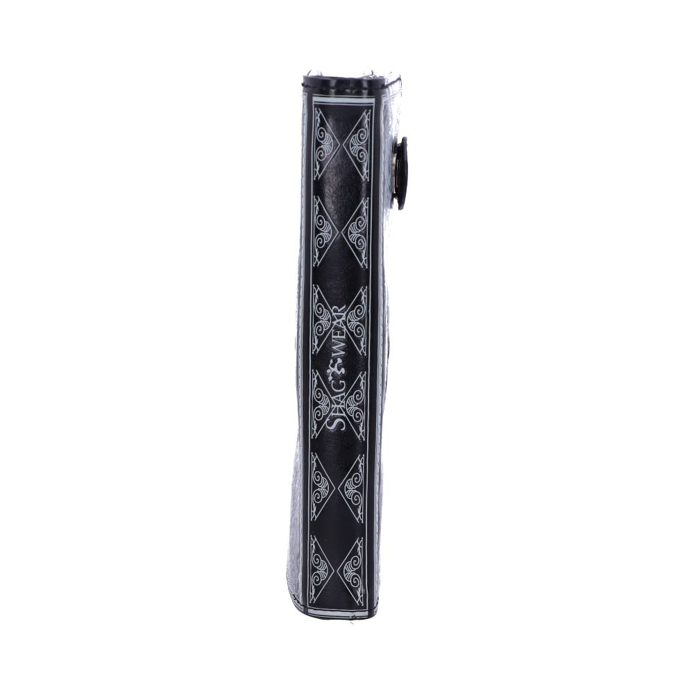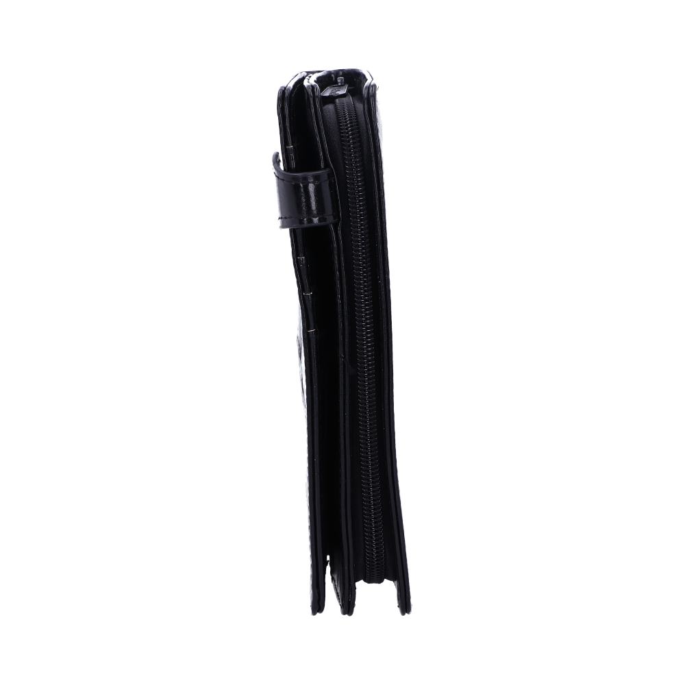 From Gothic masters Nemesis Now, this fantastic skull purse is a great way to keep your money safe. On a black background, a white skull sits in the centre of the purse, facing directly at you and grinning macabrely. It’s surrounded by baroque plumes and feathers, giving the impression of a particularly ornate playing card design. Held closed by a stud button on a black strip, and with a large zip compartment, this alternative purse is small enough to fit in any handbag while being spacious enough to accommodate all your cards and cash.