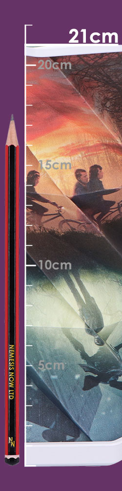 - Features a dramatic split-world design showing both Hawkins and the Upside Down