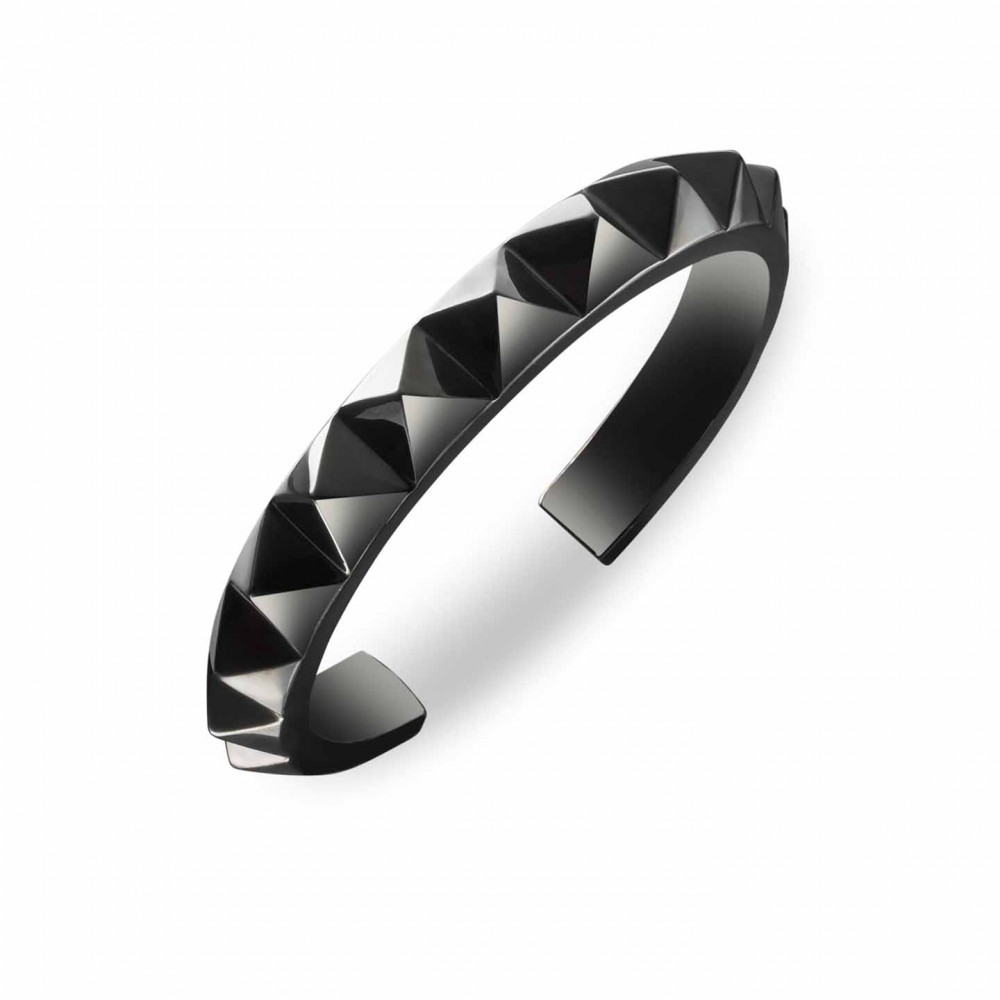 The Rebel collection embodies a spirit of nonconformist cool, using the iconic motif of the punk stud as the heart of its design. Designer Jo Sampson chose the stark, cutting-edge geometry of this simple potent shape for its enduring outsider appeal. Representing the axis of music and fashion, the punk stud injects a tough, streetwise vitality to the pieces, which contrasts with the refined craftsmanship that goes into their creation.